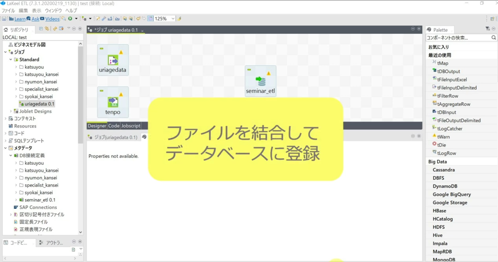 「2つのファイルを結合しDBへ登録する」処理を行うジョブの作成方法